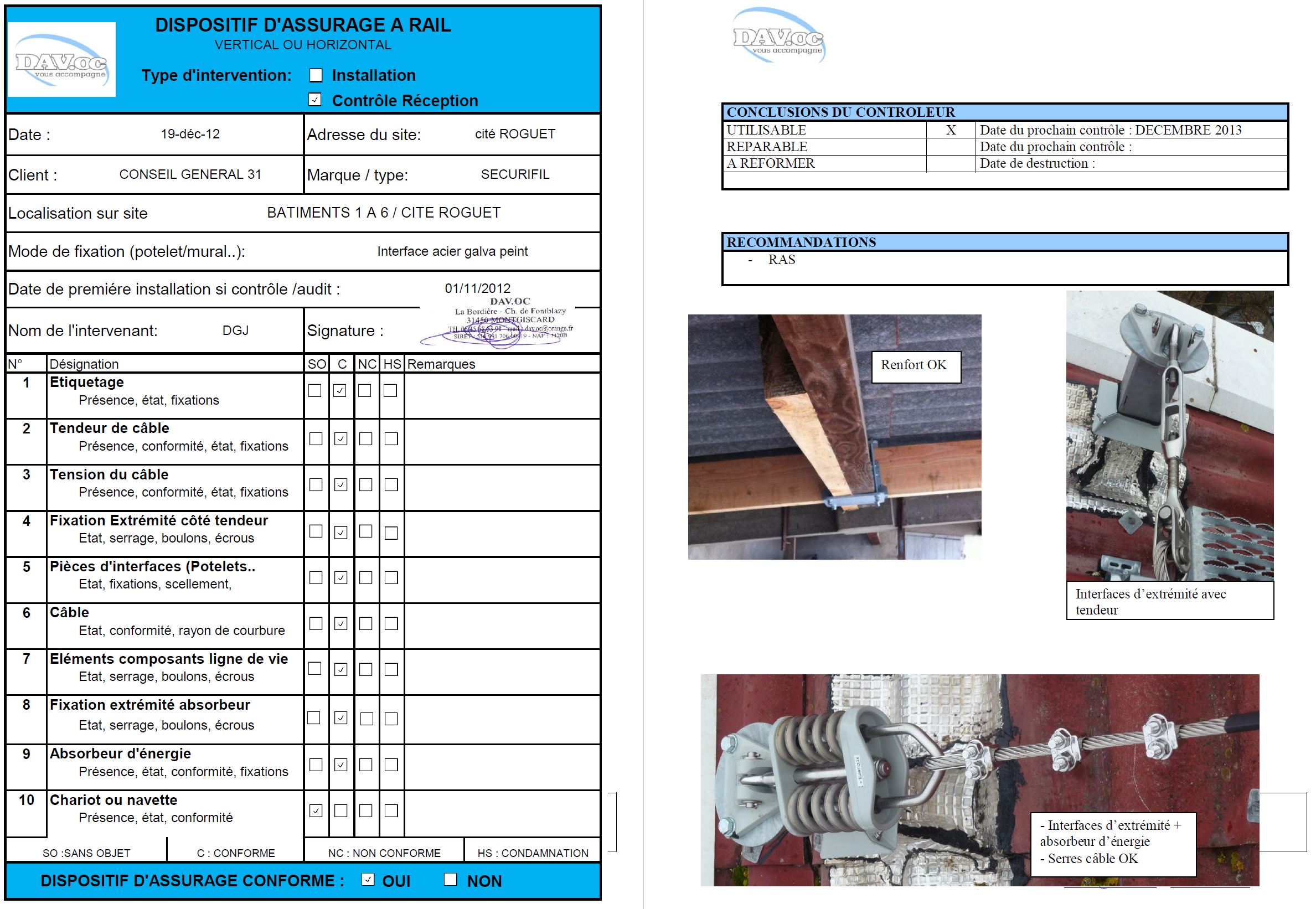 8/ Vérification initiale des installations Lignes de vie et Garde corps.